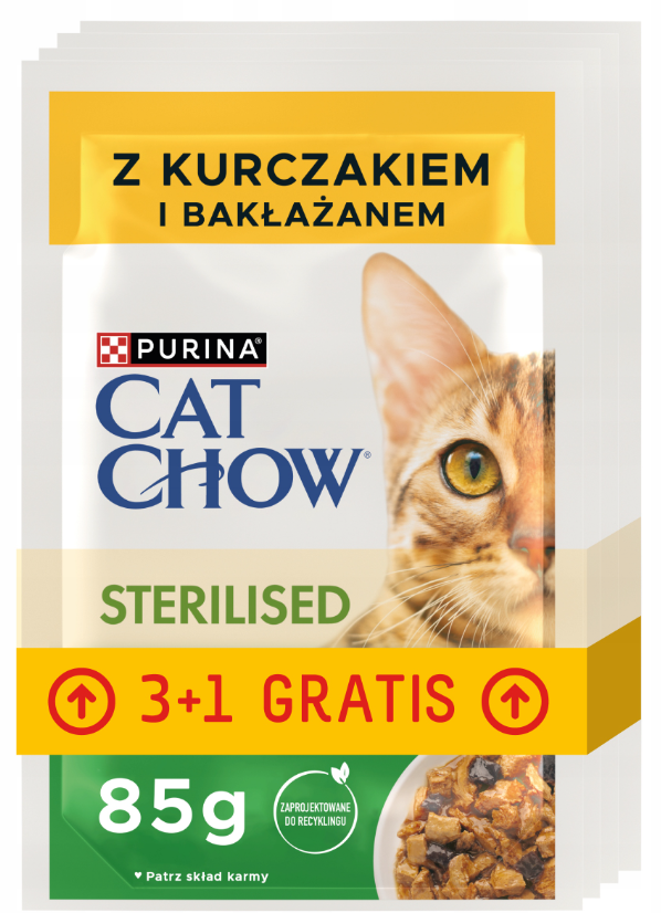 Dla produktu: PURINA CAT CHOW STERYLIZED Z KURCZAKI I BAKŁAŻANEM - 85G x 4