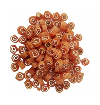 Roladki charakteryzują się wyjątkową miękkością i niewielkim rozmiarem (ok. 1 cm), co czyni je jedną z najbardziej praktycznych nagród treningowych na rynku. Są idealne dla psów wszystkich ras, w tym dla seniorów i szczeniąt, które mogą mieć trudności z twardszymi gryzakami.