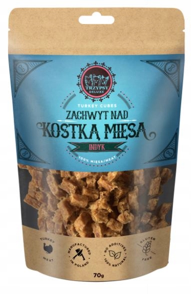 Zachwyt nad kostką mięsa z indyka: naturalny przysmak dla psa w formie drobnych kostek, wykonany ze 100% mięsa. Starannie wyselekcjonowane mięso i delikatny proces suszenia gwarantują wyjątkowy smak i aromat. Idealny jako nagroda lub zdrowa przekąska.