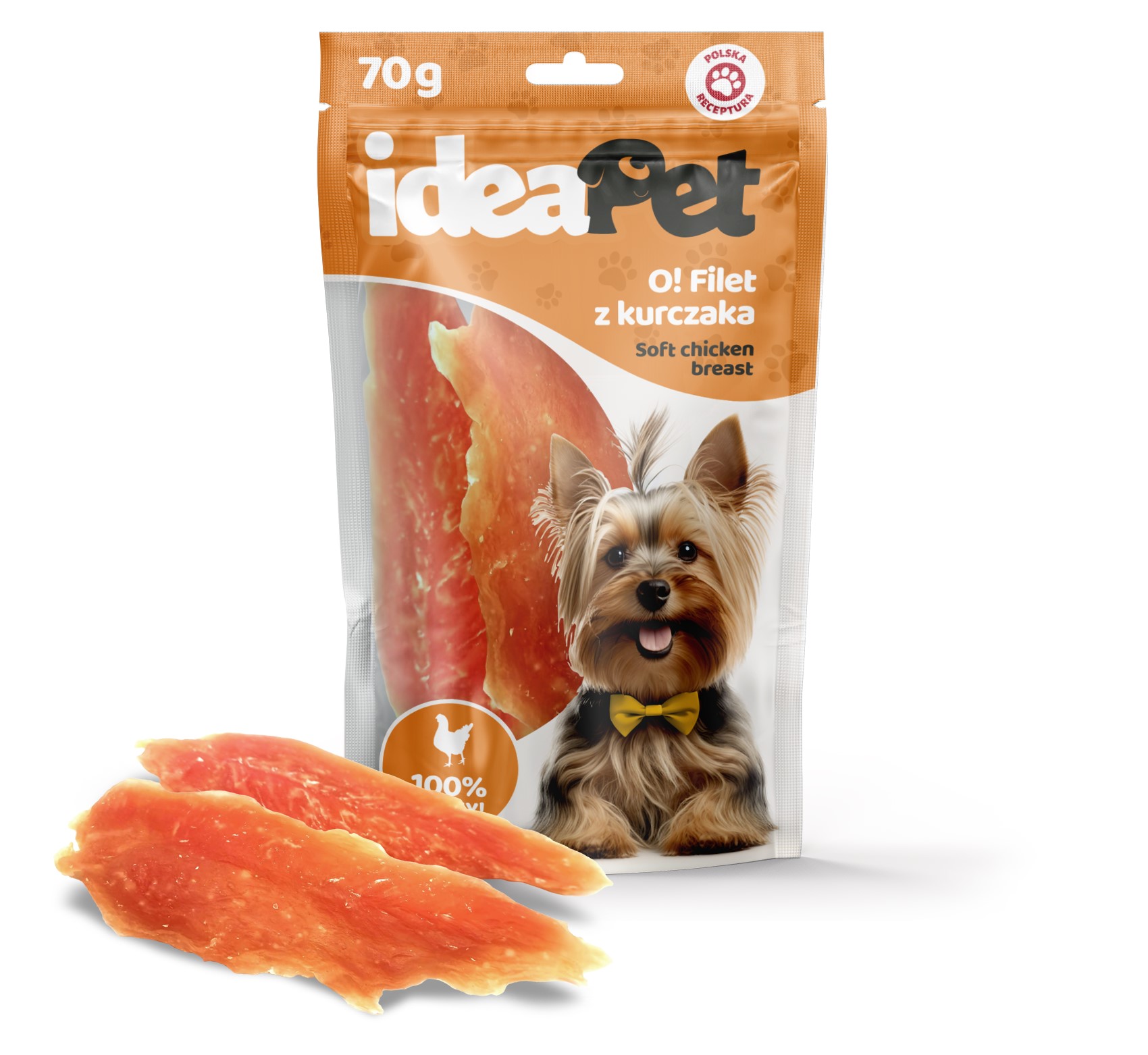 IdeaPet O! Filet z kurczaka 70 g — naturalna, zdrowa i smakowita przekąska, która zachwyci Twojego psa każdego dnia!