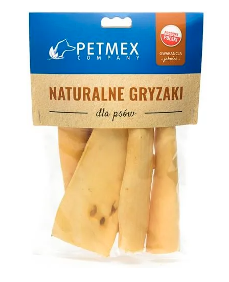 Wartości odżywcze i specyfikacja Firma Petmex kontroluje proces produkcji od pozyskania surowca po finalne suszenie nowoczesną technologią, co gwarantuje zachowanie wartości odżywczych i najwyższą smakowitość. Optymalny rozmiar 15 cm sprawia, że gryzak jest wygodny do trzymania w łapach przez psy różnych wielkości.
