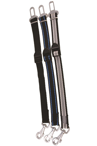Pas bezpieczeństwa dla psa. Pozwala bezpiecznie podróżować z psem bez konieczności instalowania w samochodzie kratki rozdzielającej. Wystarczy, że jeden koniec przypniesz do szelek psa, a drugi wepniesz w klamrę samochodowych pasów bezpieczeństwa.