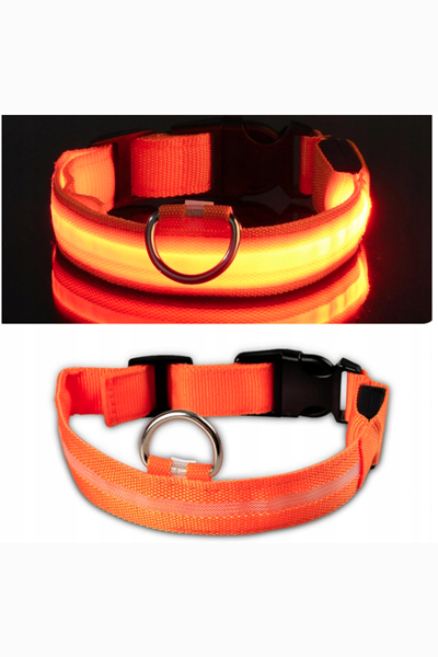 - Świecąca obroża LED wykonana z wytrzymałej taśmy nylonowej, zapinana na plastikową klamerkę.