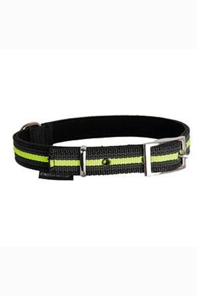 Obroża z taśmy polipropylenowej z wplecionymi elementami gumowymi.Taśma nie jest elastyczna, nie rozciąga się ani nie skręca, zaś gumowe elementy zapobiegają jej ześlizgiwaniu się, zapewniając wyjątkowo dobry chwyt. Szer. 25mm. Obw. 55-67cm.