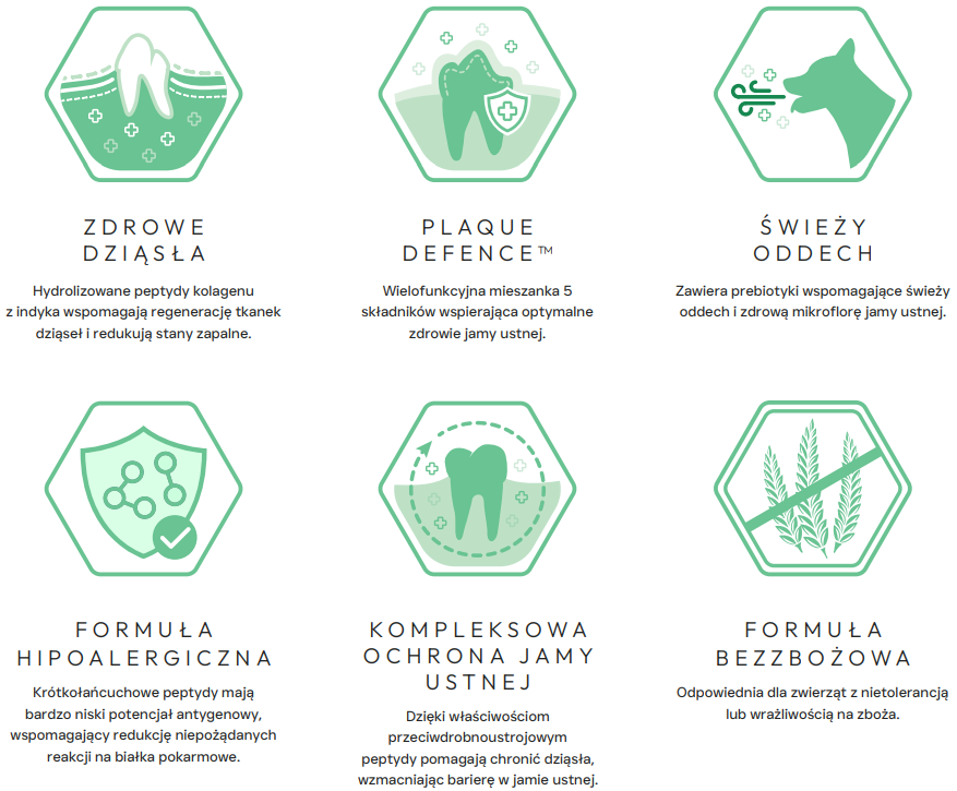 | Przeznaczenie suchej karmy dla psa: | bezzbożowe, usuwa kamień nazębny |
